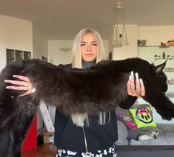 The video is from the TikTok account of fishball__. She allows video downloads. She has a big following and is into her appearance more than Maine Coon cats! Or any cat.